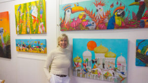 Paar lesjes hier en een cursus daar om meer uitdrukking te kunnen geven aan mijn fantasie en vooral veel met de kwast in de weer. Het onderwerp was altijd makkelijk…..vogels!!! Ik laat mij inspireren door de natuur en in vogels zie ik persoonlijkheden. Hun heerlijke vliegen voelt als vrijheid. Eigenlijk gaat schilderen vanzelf als ik mijn hart maar volg….toegeef aan de behoefte van veel kleur…wat humor…vrolijkheid en een soort van knipoog naar het leven.